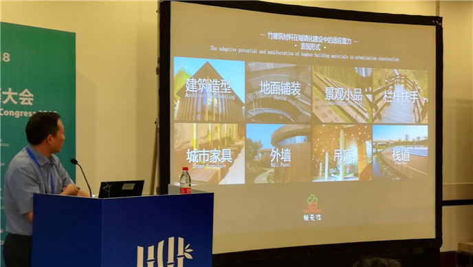 薛董以《竹建筑材料及其在城鎮(zhèn)化過程中的應(yīng)用潛力》為題,圍繞中國工業(yè)化以來企業(yè)運(yùn)用現(xiàn)代工藝技術(shù)及設(shè)備研發(fā)新的竹材產(chǎn)品,闡述在我國城鎮(zhèn)化建設(shè)過程中竹材新產(chǎn)品在室內(nèi)外的運(yùn)用以及未來的巨大潛力,結(jié)合豐富的案例展示了中國竹材產(chǎn)品的應(yīng)用成果及竹材應(yīng)用的發(fā)展趨勢。薛董的演講得到了來自世界各地的科研院所、高校、企業(yè)界的100多位代表的廣泛關(guān)注。